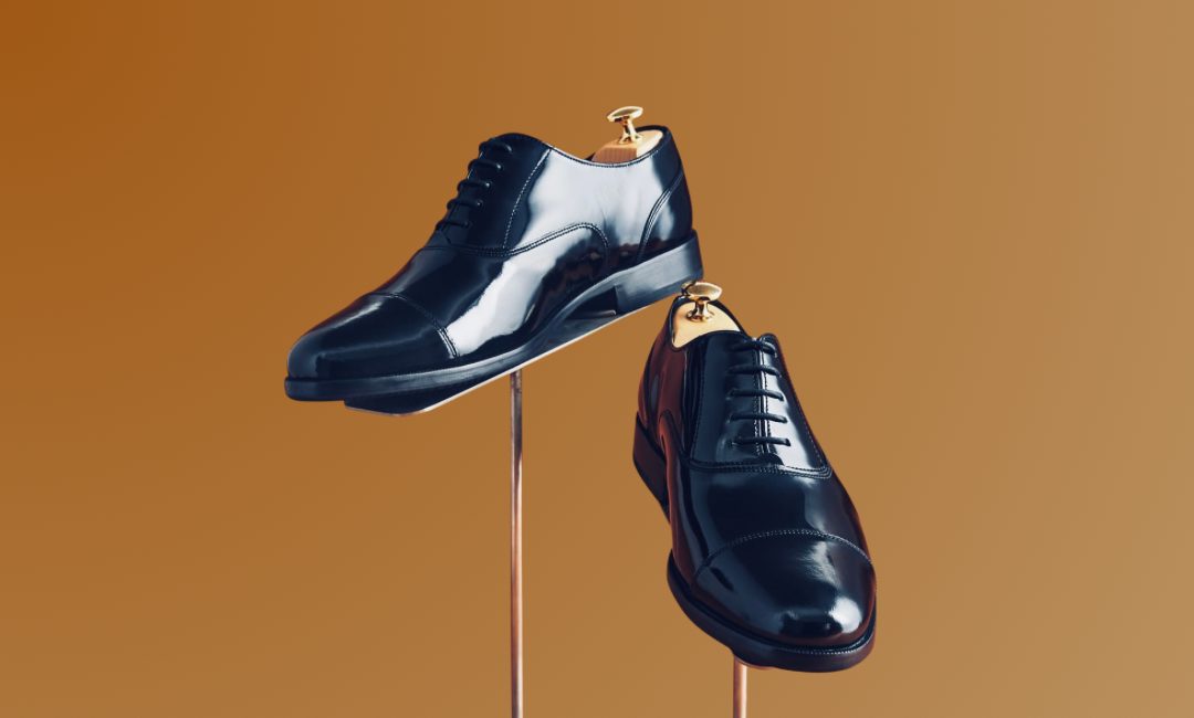 素材はカーフレザー(生後6か月以内の仔牛革)が望ましく、繊維が非常に細かく柔らかい上に、表面の艶やかさが格別です。さらに、鏡面仕上げ(ハイシャイン、もしくはミラーポリッシュ)を施すことで、光を受けたときに靴が宝石のように輝き、フォーマルスーツ全体の完成度を一段と高めます。この仕上げはつま先やかかと部分を重点的に磨き上げ、革の奥から光沢を引き出す職人技で、着る者の美意識やこだわりが如実に表れます。